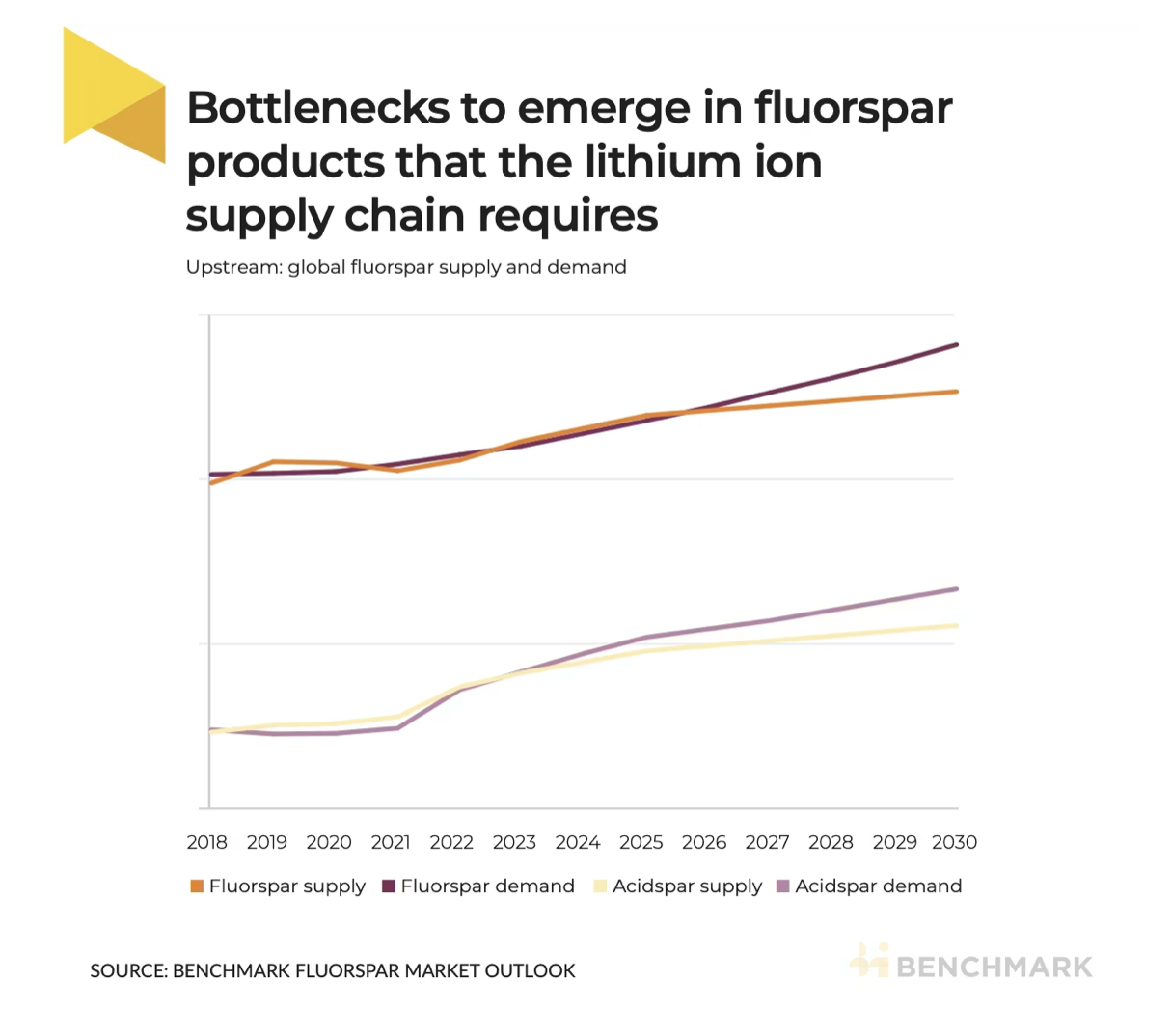 Fluorspar demand from the lithium ion battery sector is expected to exceed 1.6 million tonnes by 2030, representing a significant portion of the overall market, according to Benchmark’s Fluorspar Market Outlook.